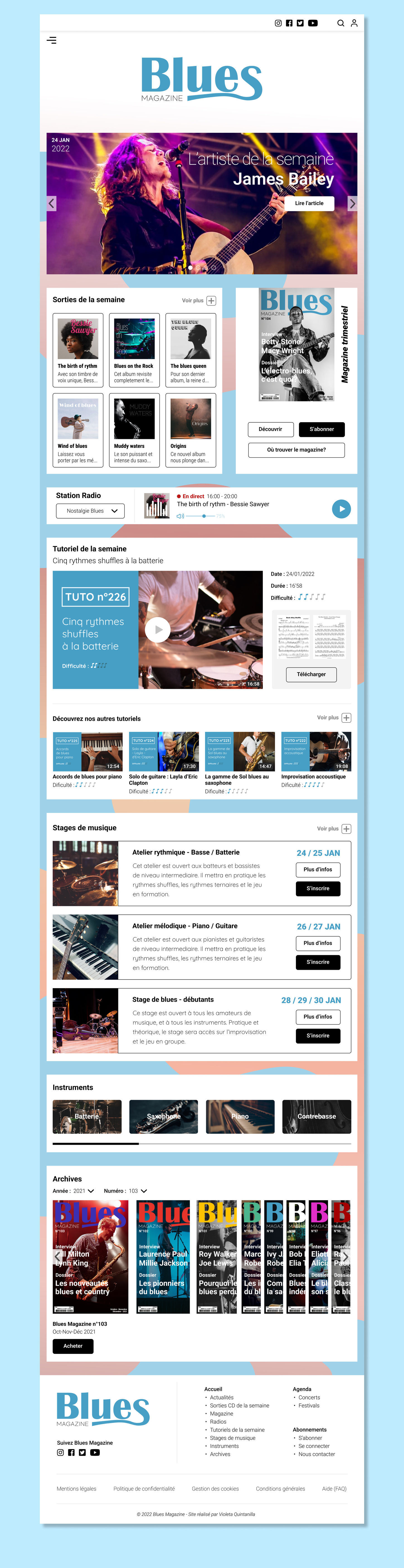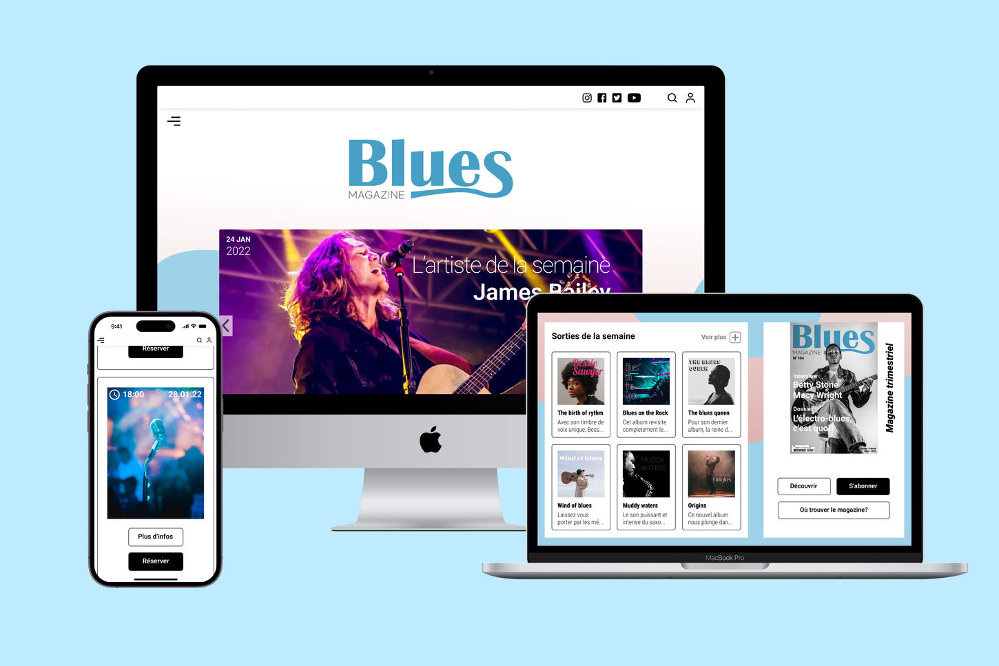 Suite à une baisse des ventes des magazines “Blues magazine”, le client m’a demandé de créer une version numérique alternative et complémentaire du